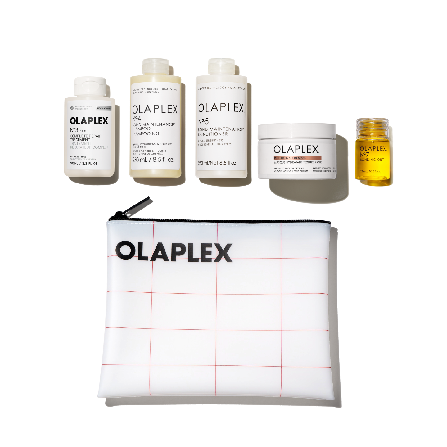 Aqua/Water/Eau, Cetearyl Alcohol, Dodecane, C10-18 Triglycerides, Behentrimonium Methosulfate, Propanediol, Behentrimonium Chloride, Helianthus Annuus (Girasole) Seed Oil, Persea Gratissima (Avocado) Oil, Brassicamidopropyl Dimethylamine, Glycerin, Hydrogenated Rapeseed Oil, Myristyl Myristate, Carthamus Tinctorius (Cartamo) Seed Oil, Brassica Glycerides, Butyrospermum Parkii (Karité) Butter, Cocos Nucifera (Cocco) Oil, Crambe Abyssinica Seed Oil, Dioctyldodecyl Dodecanedioate, Hydrogenated Castor Oil/Sebacic Acid Copolymer, Propylheptyl Caprylate, Ethyl Oleate, Fragrance/Parfum, Styrene/Butadiene Copolymer, Phenoxyethanol, Quaternium-87, Isopropyl Alcohol, Lactic Acid, Guar Hydroxypropyltrimonium Chloride, Caprylic/Capric Triglyceride, Ceratonia Siliqua (Carrubo) Gum, Propylene Glycol, Maltodextrin, Chlorphenesin, Ethylhexylglycerin, Bis-Aminopropyl Diglycol Dimaleate, Sclerotium Gum, Arginine, Silybum Marianum Seed Extract, Succinic Acid, Trisodium Ethylenediamine Disuccinate, Hexyl Cinnamal, Limonene, Citral, Olea Europaea (Oliva) Leaf Extract, Pentaerythrityl Tetra-di-t-butyl Hydroxyhydrocinnamate, Tocopherol, Sodium Benzoate, TBHQ, Sodium Hydroxide, Yellow 5 (CI 19140), Yellow 6 (CI 15985) OLAPLEX N°.7 BONDING OIL™ Dimethicone, Isohexadecane, C13-14 Isoalkane, Coco-Caprylate, Phenyl Trimethicone, Bis-Aminopropyl Diglycol Dimaleate, Propanediol, Zea Mays (Mais) Oil, Beta-Carotene, Helianthus Annuus (Girasole) Seed Oil, Punica Granatum Seed Oil, Water/Aqua/Eau, Morinda Citrifolia Fruit Extract, Tocopherol, Pseudozyma Epicola/Camellia Sinensis Seed Oil Ferment Extract Filtrate, Fragrance (Profumo), Citral, Linalool, Limonene, Citronellol, Hexyl Cinnamal